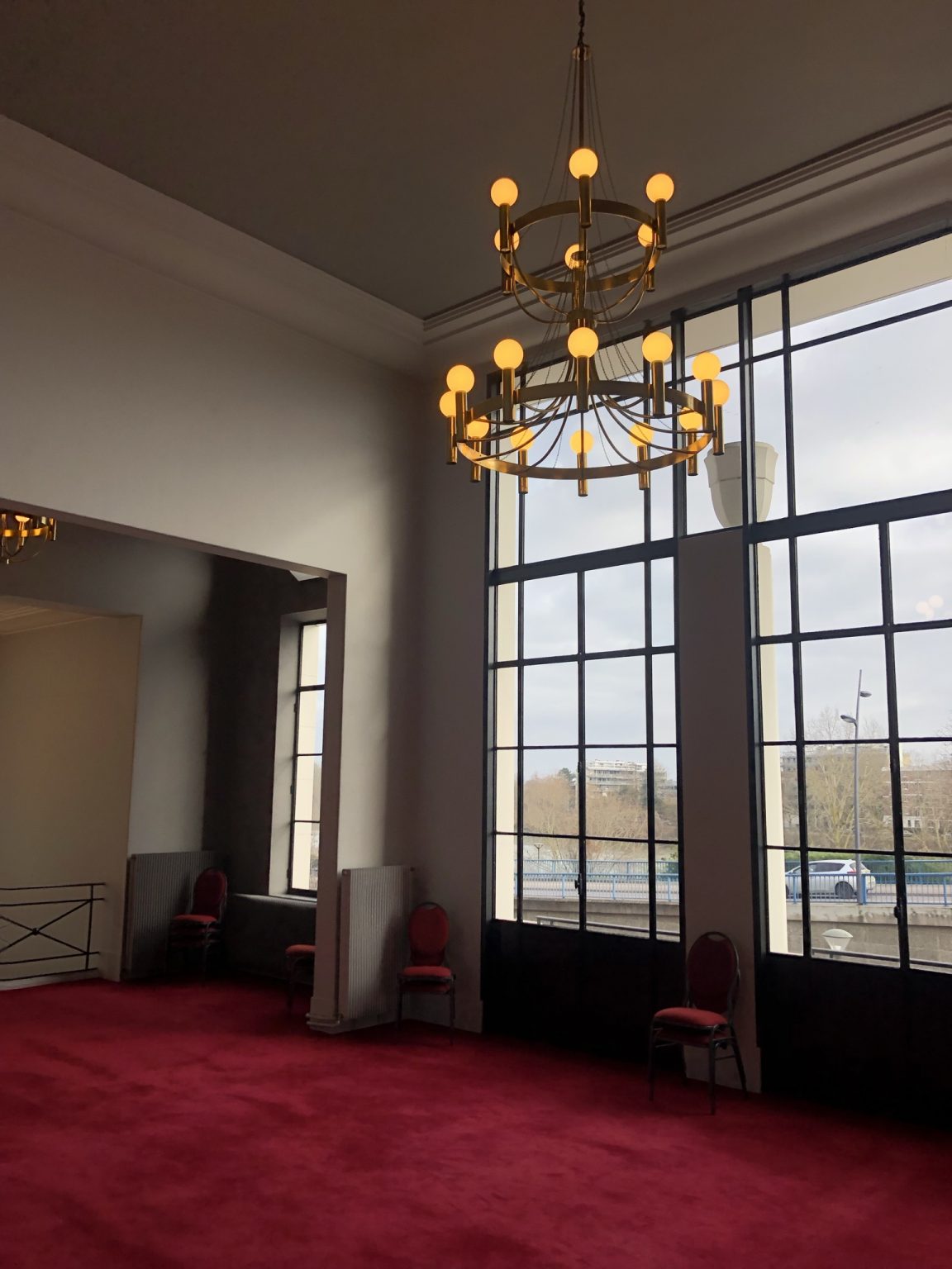 La salle du “Quai 3” au Pecq illustre le meilleur des salles des fêtes créées durant les années 30 dans le style paquebot.